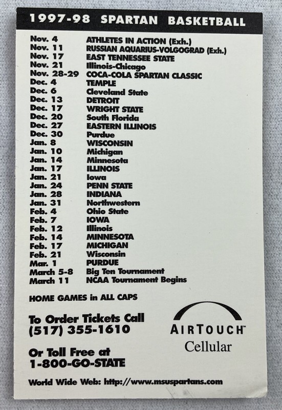 Michigan State Men's Basketball Schedule - 1985-86 Scott Skiles Ncaa Mens Basketball Schedule Card Michigan State Spartans
